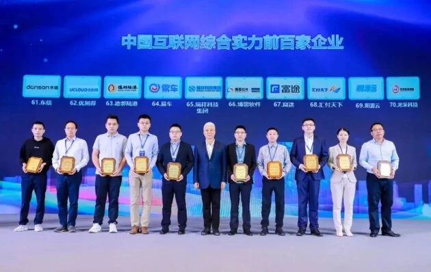 图:汇付天下荣获“2022年中国互联网综合实力前百家企业”第68名