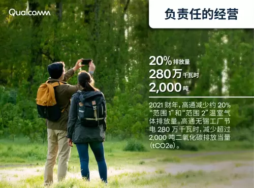 数字经济首先应该是绿色经济,智能世界也应该是绿色世界。实现碳达峰、碳中和是一场广泛而深刻的经济社会变革。长期以来,高通通过自身所从事的研发活动、产品设计和运营方式,致力于应对气候变化带来的环境、社会和经济影响,高通承诺加入科学碳目标倡议(SBTi)的“企业雄心助力1.5℃限温目标行动”,并设定了新的2030年中期减排目标和2040年净零排放目标;2021财年,高通减少约20%“范围1”和“范围2”温室气体排放量,高通无锡工厂通过实施各种节能计划和项目减少约280万千瓦时的电力使用,成功减少了超过2000吨二氧化碳排放当量(tCO2e)。