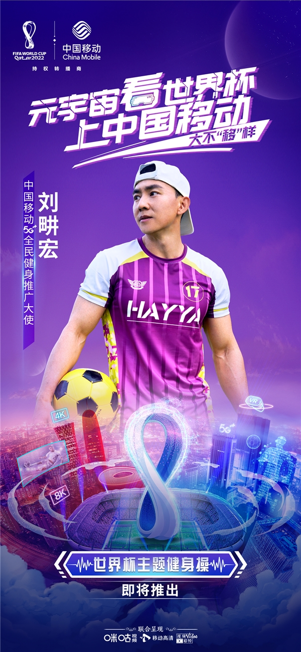 作为“中国移动5G全民健身推广大使”、全球通“型动计划”总教练,刘畊宏将推出世界杯主题健身操,通过数智人和真人“同框”的方式,让人们在运动的趣味中感受足球共鸣,并发起线上短视频挑战打卡活动,营造“全民世界杯”的健身氛围。