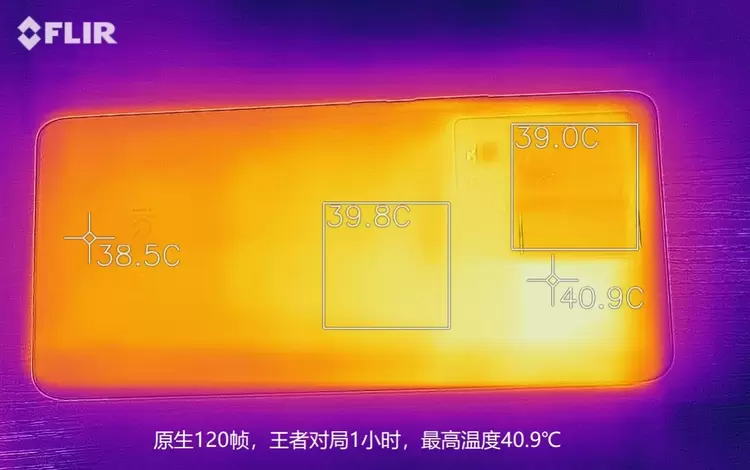 前面1小时耗电18%,后盖峰值温度40.9℃,有温热感,不烫手;