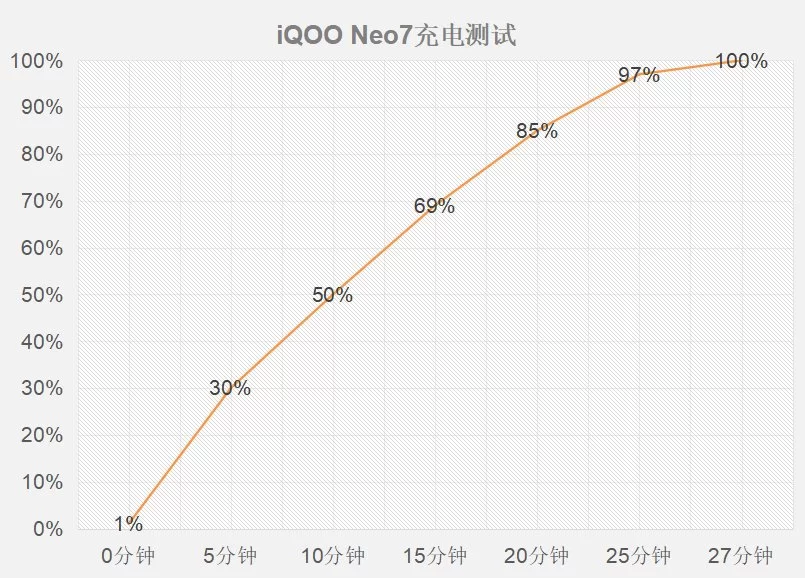 让我意外的是,iQOO Neo7在充电方面也给了120W超快闪充,这显然是旗舰下放。经测试,这部手机从1%充到100%电量,只用了27分钟,回血速度猛。尤其前面10分钟的充电效率很高,回血一半,这样后续临下班忘充电、临出门手机电量告急就不用担心了,充上10分钟,路上放心用。