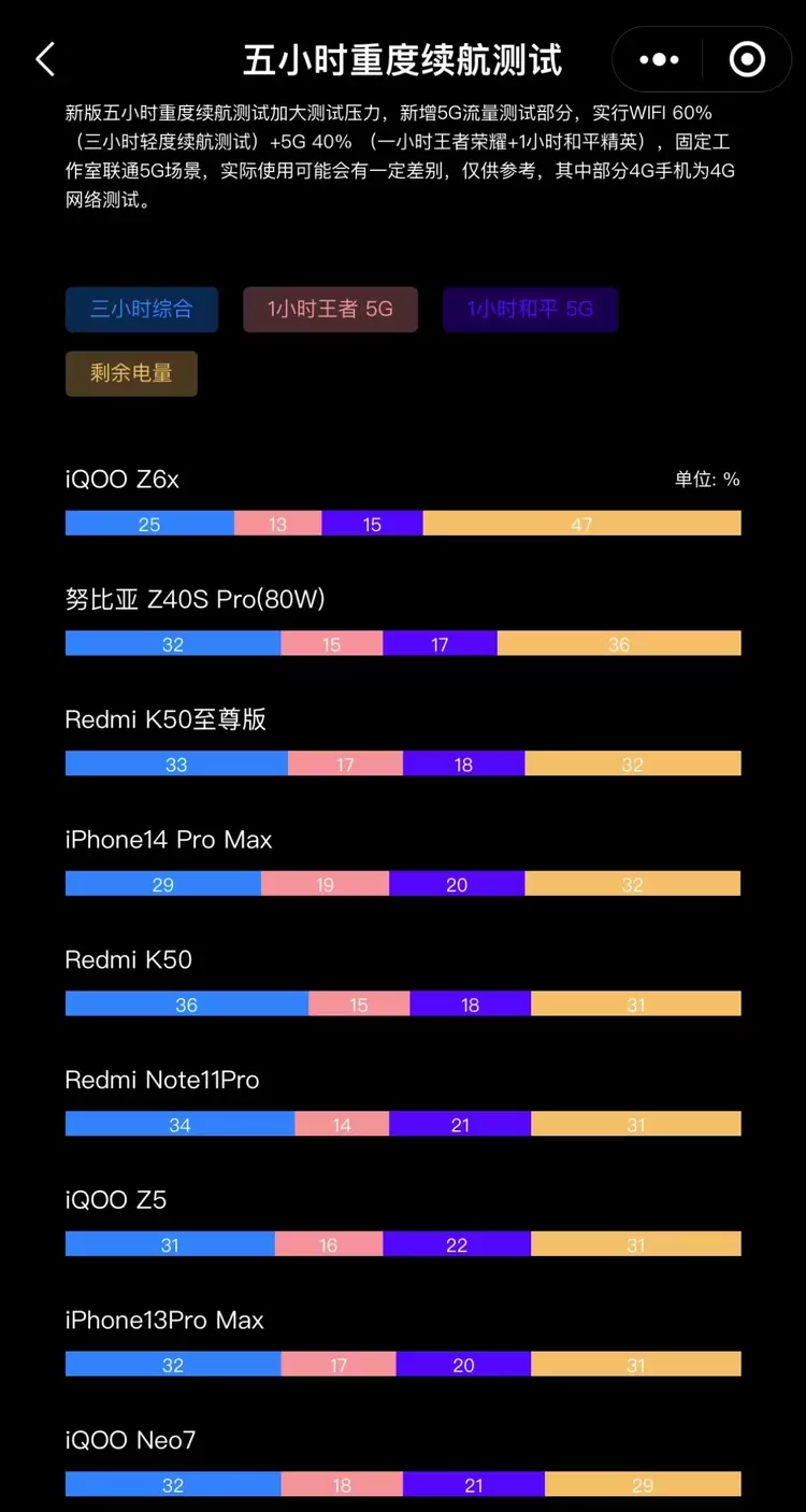 无独有偶,在小白数据库的五小时重度续航测试榜单中,iQOO Neo7也上榜,排名相比同价位段多数机型或更大电池的机型靠前,这份续航实力藏不住。