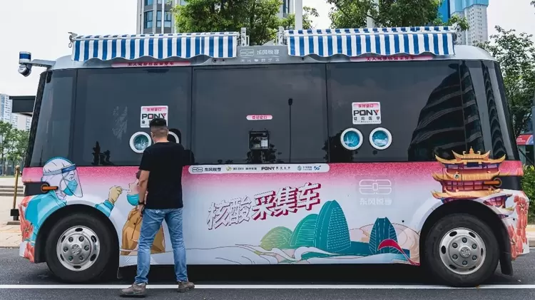 武汉街头的Sharing-Bus无人驾驶核酸检测车