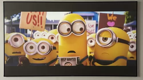 仅1.6cm纤薄的100吋大屏幕,挂装到墙上只需四个挂片,安装简单;屏幕是无缝隙贴墙的,安装好之后整个房间就更简洁大气了。据了解,AIMOV的菲涅尔软屏已完成研发量产预备推出,对运输安装更加友好,价格上也更具竞争力。