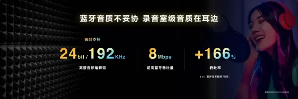 在音质上,天玑9200也实现新突破,率先支持24bit/192KHz高清音频编解码,以最高8Mbps的蓝牙速率带来录音室级的高保真蓝牙音质。