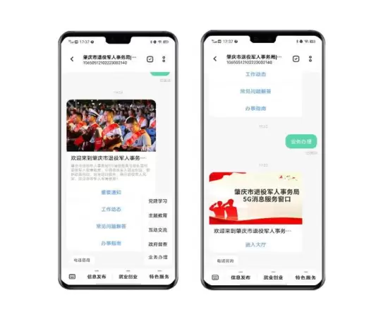 此次“绽放杯”5G应用大赛5G消息专题赛,是对百悟科技5G消息技术实力和场景应用能力的一次集中展现。其中,由肇庆移动、百悟科技联合肇庆市退役军人事务局打造的5G消息服务平台,构建智慧、高效、便捷的退役军人线上服务体系。