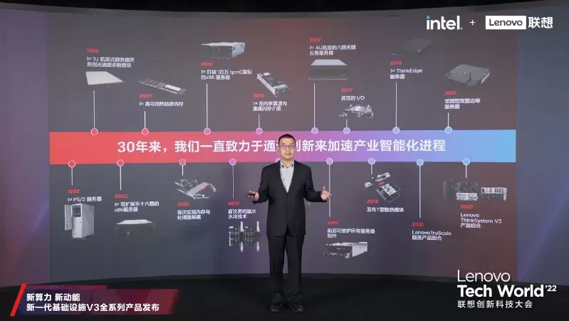 从1992年第一台ThinkSystem服务器面世以来,联想坚持思考与探索,通过创新的产品加速产业智能化进程。作为本次大会“压轴”发布的全新一代基础设施V3全系列产品,以空前丰富的产品矩阵和极具亮点的技术升级,再次彰显了联想的创新、品质与实力。