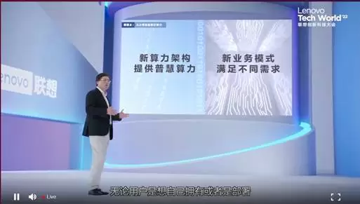 杨元庆表示,随着算力的购买/消费模式不断更新,提供算力的业务模式也要与时俱进,更加灵活,无论用户想自己拥有或者部署,还是以“一切皆服务”的模式按需、按使用付费,都能得到满足。