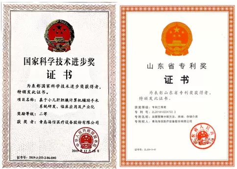 2018年,“计算机辅助手术工作站关键技术专利群”经山东省科学技术厅、山东省市场监督管理局(知识产权局)认定为山东省百项关键核心技术知识产权;相关知识产权经成果转化的“基于小儿肝胆胰计算机辅助系统研发、临床应用及产业化”技术成果荣获2019年度国家科技进步二等奖;2022年4月,发明专利“血管图像分割方法、终端、存储介质”荣获第四届山东省专利奖三等奖。海信医疗知识产权成果产出效益不断显现,助力医学影像设备技术创新与产品升级。