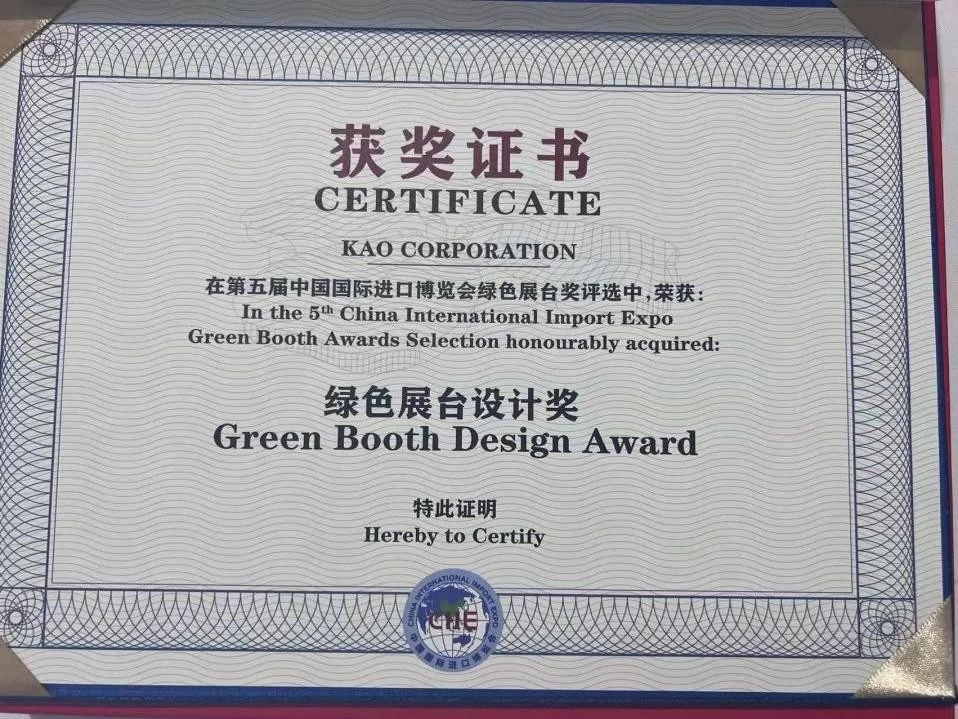 在本届进博会上,花王精心布置的“同美共生”展示空间为观众带来了开放、多元、贴近生活并充满科技魅力的感官体验,以多视角、多层次映衬“绿色发展”和“美丽中国”建设的主旋律,荣获进博会官方评选出的“绿色展台设计奖”。同时,从参与首届进博会开始,花王与这一国家级盛会携手5年,在享受参展红利的同时也为中国消费者带来了全球领先的创新成果,得到政府、行业伙伴及用户的认可与肯定,花王也因此获得了颇具含金量的“进博会5周年合作共赢奖”。