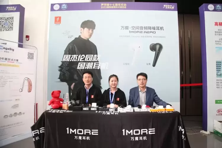 活动现场,1MORE万魔耳机展示了最新的TWS耳机,包括1MORE Aero空间音频耳机、1MORE SonoFlow降噪头戴耳机等,吸引不少与会者驻足试用试听,共同交流最新音频技术。