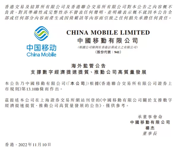 中国移动:2023年以现金方式分配的利润逐步提升至当年利润的70%以上
