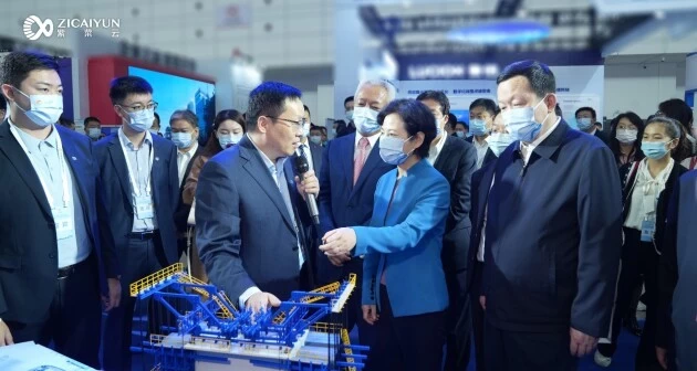 省委副书记、省长周乃翔(右1),工信部副部长徐晓兰(右2)等领导莅临紫菜云展区参观指导