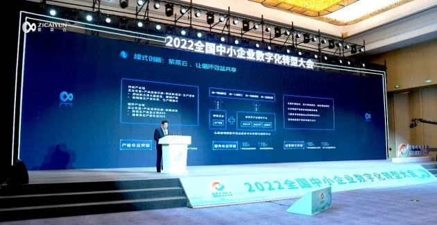 在大会主会场,创始人褚兴民发表了主题演讲《携手中小企业链式上云,构建基建产业循环生态》。作为基建物资循环共享模式领导者,紫菜云详细阐述了基建产业大循环的解决方案,勾勒出基建产业绿色发展新生态的产业愿景。