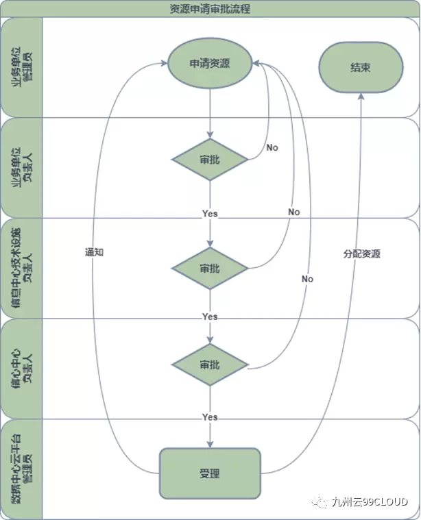 数据中心云平台管理员,根据审批通过的结果,开通相关资源,提供相关服务;并通知申请人。