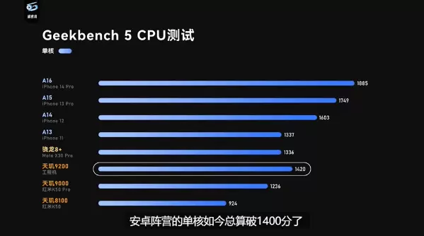 天玑9200实测成绩:CPU单核成绩突破1400分,堪称安卓芯皇