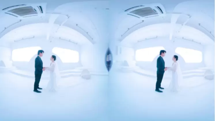 3D VR新视角下的婚礼影像(头显中画面,已进行等距柱状投影)