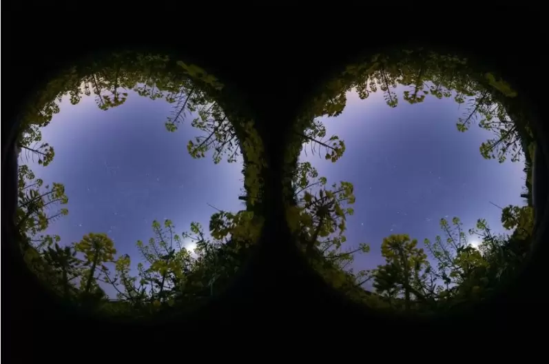 EOS虚拟现实系统包括佳能首款VR镜头 RF5.2mm F2.8 L DUAL FISHEYE、EOS R5全画幅专微(或EOS R5 C全画幅电影摄影机)及专门开发的EOS VR Utility和EOS VR Plug-in for Adobe Premiere Pro两款数据转换及处理软件,涵盖VR视频内容创作从输入至输出的全程,对于长期使用相机进行专业创作的戴建峰而言,EOS虚拟现实系统基于EOS R5全画幅专微,兼顾了天文摄影对器材的专业性与VR拍摄学习的简易性,可实现相当于8K的高分辨率画面记录,同时其高ISO下的表现也十分优秀,使他可以迁移以往的拍摄经验,迅速上手VR拍摄。