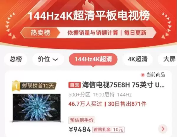 市占率排名中国第一!海信高刷游戏电视引领行业高增长赛道
