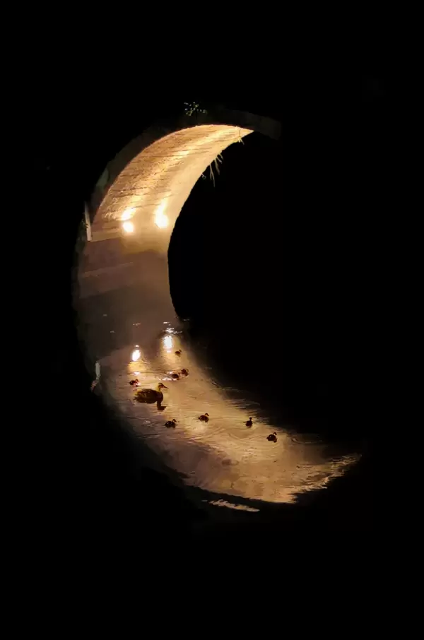 下面这幅名为《月亮船》的作品,是用HUAWEI P30 Pro拍摄的,水中拱桥的倒影如一轮弯月,几只鸭子正好闯入“弯月”戏水,让原本平静的水面泛起一圈圈波纹,静中有动。整幅作品通过明与暗的反差,给人温馨浪漫的感觉。
