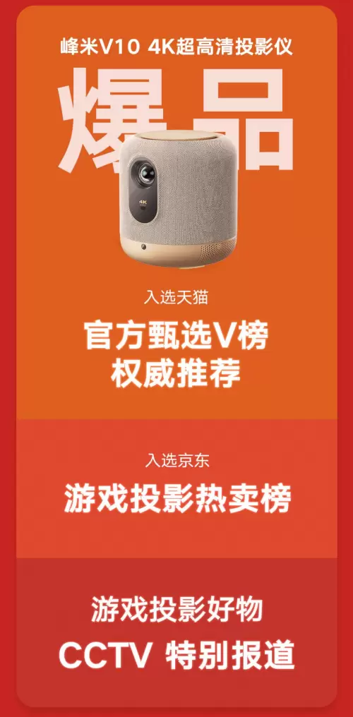 同样作为今年的新品,峰米V10 4K超高清投影仪(以下简称“峰米V10”)也获得了众多消费者的关注,除了和峰米S5一样入选最受用户喜爱的爆品TOP3之外,还入选天猫官方甄选V榜权威推荐以及京东游戏投影热卖榜,更是被CCTV特别报道的“游戏投影好物”。
