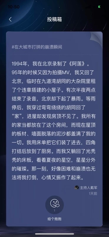 喜马拉雅在这档节目中,内容之外,通过产品交互上的功能创新升级,增强了节目与听友、听友和听友之间的互动,使得平台和听友之间有了更强的情感连接。值得一提的是,在互动页,喜马拉雅用“抱抱”代替“点赞”,更强化了听友在这里“抱团取暖”的社区温情属性。