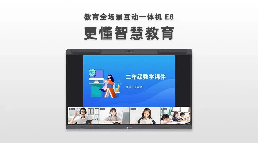 不同于传统教育大屏,教育全场景互动一体机E8基于好视通自研多项音视频核心技术打造,集4K触控大屏、148° 超广视角双4K高清光学镜头、八阵列麦克风于一体,实现AI智能考勤、同步课堂、网络教研、视频会议、智能巡课五大应用,可全面满足常态教学与三个课堂多场景应用需求。