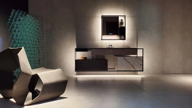 展览分为视觉层面、功能层面、社会层面与《中国设计趋势报告》四个部分,同时展出FAENZA法恩莎X杨明洁联名新品“Mondrian”系列-动态中的平衡