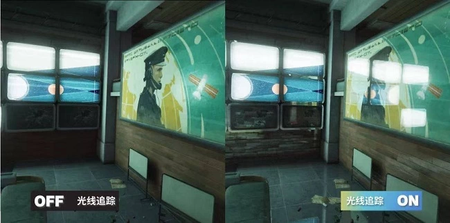 在环境物体的反射方面, 光滑表面能够呈现清晰的、准确的场景反射,增加场景真实度和沉浸感。相较于传统的反射技术,基于光线追踪的反射能够渲染到视角外,玩家不能直接看到的物体,例如身后和墙壁侧后面。基于光追的反射技术,玩家可以在战局对抗内通过环境获得更丰富更真实的战局信息,这将大大提高游戏的博弈性和对抗感,也为玩家提供了更加丰富的战术空间。