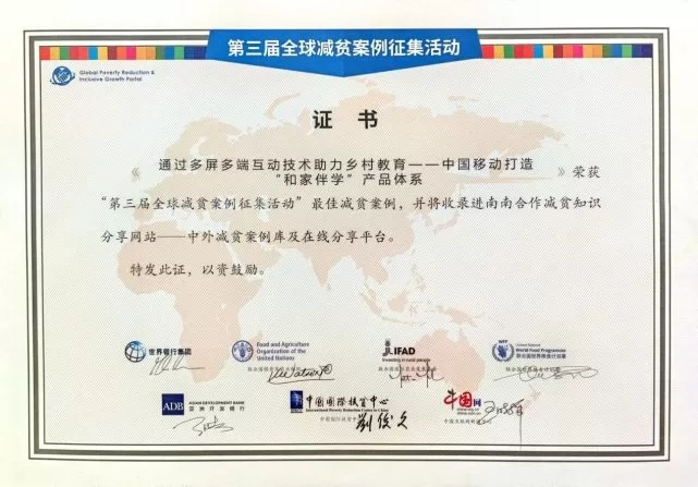 11月11日,以“共享发展——消除贫困与可持续乡村振兴”为主题的2022全球减贫伙伴研讨会在京召开,会议发布了第三届全球减贫案例征集活动获奖名单。中国移动申报的“通过多屏多端互动技术助力乡村教育振兴——打造和家伴学产品体系”案例作为唯一电信运营商案例入选。这是中国移动连续三届入选全球减贫案例。