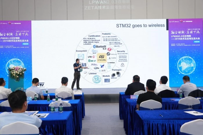 除此之外,ZETA也一样拥抱与LoRa的技术融合。在意法半导体产品市场经理罗少贤关于“ZETA+LoRa®,LPWAN2.0技术融合从“芯”开始”的演讲中指出,意法半导体STM32也在不断扩大产品组合,比如STM32WL SoC,ZETA Over LoRa®,ZETA LPWAN协议栈兼容LoRa,无需更换芯片模组实现协议切换,助力LPWAN生态互联互通,释放IoT应用无限可能。适用于智能电表、智慧楼宇、智慧物流、智能家居以及工业物联网等多个LPWAN场景领域。