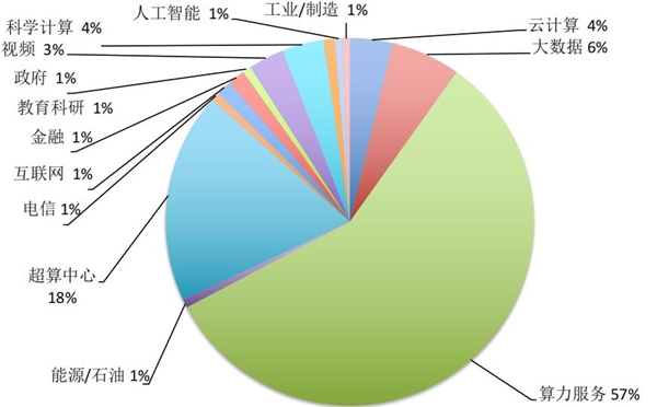 从应用领域看,应用于“算力服务”的系统性能份额占比达到57%,超算中心、大数据、云计算、科学计算、视频应用分别以18%、6%、4%、4%、3%紧随其后。