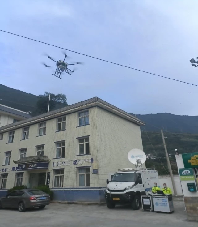中国移动无人机高空基站为四川泸定县德威镇群众提供应急网络服务
