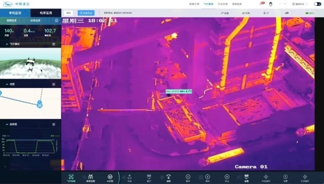 为解决高炉巡检难和危险性高的问题,中国移动创新性打造5G网联无人机巡检方案,具备厂区立体安防、生产环境及设备状态检测功能,可执行突发事故指挥处置以及常态化全天厂区自动巡逻、巡检等任务。工作人员只需远程点击鼠标即可进行数据和视频回传、存储和分析,实现对高炉、热风炉等设备的温度检测和预警。