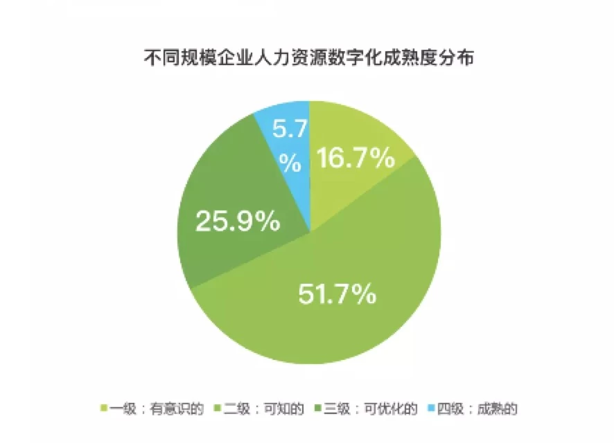 《CHO人才战略调研报告》指出,基于ATOP人力资源数字化成熟度模型,可以发现现阶段我国企业的人力资源数字化成熟度现状与发展痛点。数据显示,51.7%的企业初步步入了人力资源数字化第二等级,人力资源数字化发展仍“前路漫漫”。 企业在落地人力资源数字化转型过程中,在人与生态、组织和流程等维度的能力沉淀都较为薄弱,主要面临战略传导难、机制构建难、人才储备难、工具扩展难和体验升级难等痛点。