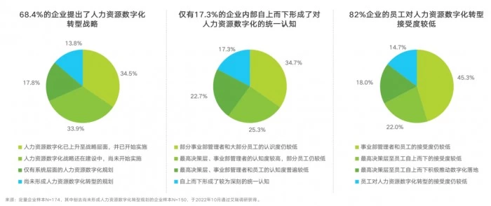 数据显示,68.4%的中大型企业已经实施人力资源数字化转型战略,但企业“数字人力”氛围仍有待提升,事业部管理者和员工的数字化认知度与接受度仍有待加强。