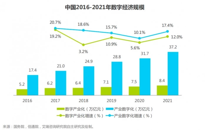 数字化已经成为企业未来发展的必然趋势,企业数字化转型的脚步越来越快。根据中国信通院数据,2016年至2021年,我国数字经济规模从22.6万亿元增至45.5万亿元,预计到2025年,数字经济规模将超过60万亿元。