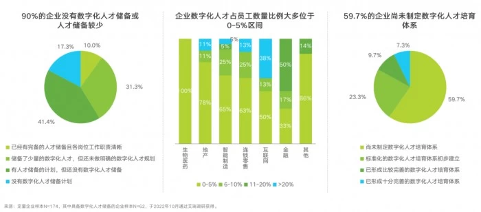 数字化人才培育是企业人力资源数字化转型的关键一环,调研结果显示,目前90%的企业还未储备数字化人才,59.7%的企业尚未定制数字化人才培育体系,人力资源部门还需要不断完善数字化人才培养机制。