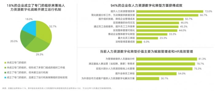 转型之路道阻且长,但企业一旦作出转型的决心,并在这条路上持续投入人力物力,转型成效也会显而易见,数据显示,已经实施转型的68.4%中大型企业中,超九成企业已经获得成效,尤其是人力资源数字化转型在提升企业管理效率上成效更加显著。