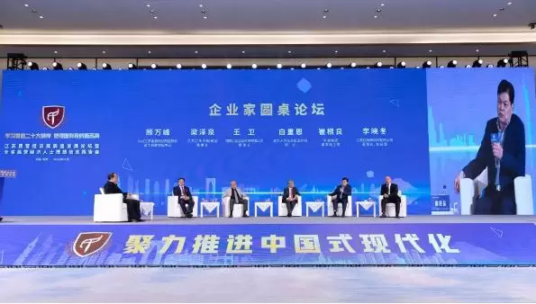 随后举行的江苏省民营经济高质量发展论坛暨全省民营经济人士理想信念报告会上,与会专家学者、企业家代表围绕“学习贯彻二十大精神、做强国有我的新苏商”主题展开对话互动,共谋创新之策,共襄发展盛举。