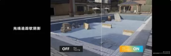 光线追踪软阴影:真实世界的阴影会因为与光源距离的远近或者光线的强弱而形成不同的软硬度。传统的渲染方式只能做到硬化的阴影,与周围环境格格不入。联发科依托移动端光线追踪技术相对真实地计算出场景物体所对应的反射角度和位置,从而形成更真实的软阴影,反映出光线强弱和不同的距离。