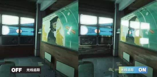 在环境物体的反射方面, 光滑表面能够呈现清晰的、准确的场景反射,增加场景真实度和沉浸感。相较于传统的反射技术,基于光线追踪的反射能够渲染到视角外,玩家不能直接看到的物体,例如身后和墙壁侧后面。基于光追的反射技术,玩家可以在战局对抗内通过环境获得更丰富更真实的战局信息,这将大大提高游戏的博弈性和对抗感,也为玩家提供了更加丰富的战术空间。