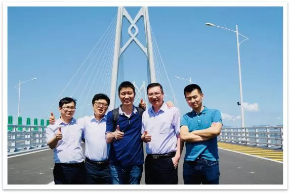 偶数科技CEO常雷(中),与加速器北京驻企CTO王雷(右二),加速器北京技术顾问侯维(右一)在珠海港珠澳大湾区交流合影