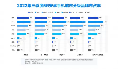 每日互动大数据显示,vivo在一线、二线、三线、四线及以下城市的品牌占比均处在领先位置;华为在一线、新一线、二线城市仍具备影响力;荣耀在各级别城市的品牌市占率均较二季度有明显增长。
