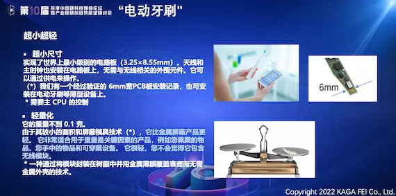 作者在EEVIA第十届年度中国硬科技媒体论坛暨2022产业链研创趋势展望研讨会上了解到,例如像电动牙刷、筷子、钢笔这类产品,如果需要引入蓝牙功能,就需要使用超小尺寸的蓝牙模块。像加贺富仪艾电子所拥有的目前世界上最小之一的蓝牙无线模块,尺寸可仅为3.25毫米×8.55毫米×1毫米,模块重量不到0.1克,能够在只有6毫米的PCB上进行安装。并且可在理想条件下,支持一公里甚至更长距离的输出。