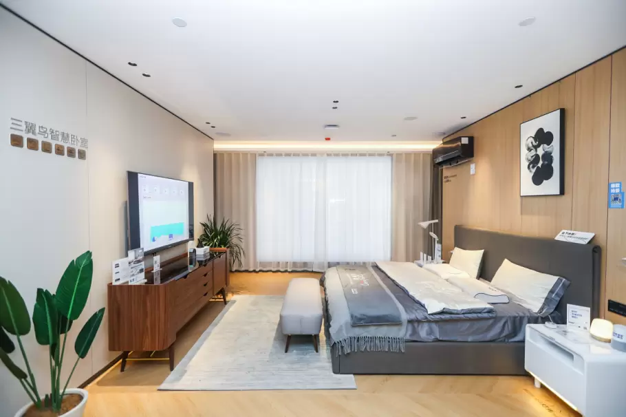 智慧卧室里的场景:难以入睡?睡不安稳?三翼鸟智慧卧室为用户带来了全流程的健康睡眠管理解决方案,涵盖睡前、睡中、起床等多个生活场景,满足用户的健康睡眠需求。