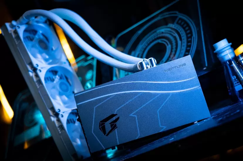 来自失落的亚特兰蒂斯文明的iGame GeForce RTX 4080 16GB Neptune OC采用一体式银白合金装甲,结合360mm散热冷排和核心直触大尺寸散热铜底,为一键超频达2640MHz频率的GPU核心提供绝佳散热环境。为简化机箱布线难度,iGame RTX 4080水神在冷排上集成了风扇供电和RGB同步接口,三架120mm风扇均通过冷排连接到显卡上,在iGame Center软件中实现统一转速、RGB灯效管理。