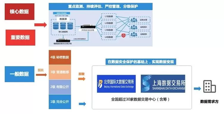 尤其对于医疗行业而言,作为关系国计民生的重要行业,医疗健康数据和国家安全密切相关。目前,在医疗数字化持续推进下,临床业务数据开发利用、医疗机构间数据互联互通、临床数据共享需求正在快速增加,考虑到医疗数据流通过程参与主体的多样性以及应用场景的复杂性,对于医疗机构而言,如果不清楚自己的核心数据、重要数据等存储在哪儿、哪些环节流通、哪些业务在调用、隐藏着哪些风险,极易造成核心数据、重要数据被破坏、被篡改与被泄露。