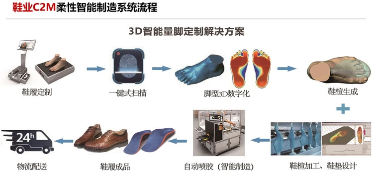 当前,智能化改造升级已经成为大多数企业的发展方向。3D大数据结合人工智能、柔性智能制造技术,将给鞋服等传统行业进行颠覆式创新。基于核心的3D智能数字化技术为个性化定制柔性生产提供基础设施,通过对智能制造产业的信息化、3D智能化改造、工业4.0数字化工厂转型升级,打造全国鞋服行业的“供给侧改革、需求侧升级”的标杆。在大数据和3D人工智能的赋能下,工厂能够根据3D大数据调整设计和并利用智能化升级柔性制造工艺,让大规模工业生产和个性化C2M订制合二为一,实现智能制造在各行各业的成功转型升级。