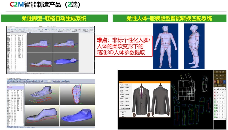图 C2M中的2端算法(用于将C端消费者的3D脚型/人体数据,转换成工厂M端的生产制造鞋楦/服装版型数据,其技术核心在于对非标人体柔软变形下的精准一致3D人体参数提取)